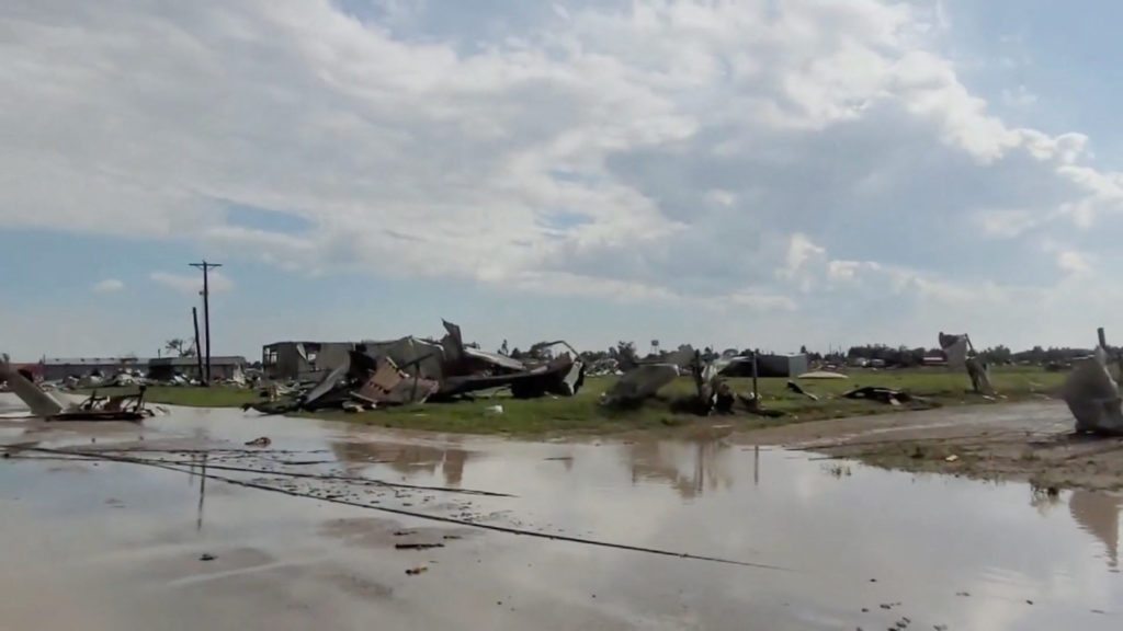 “The devastation was unbelievable. It took a tanker truck and threw it into a pasture,” Devers said. Power lines were knocked down and buildings were flattened in the town of about 8,000 about 115 miles (185 kilometers) northeast of Amarillo, just south of the Oklahoma line.